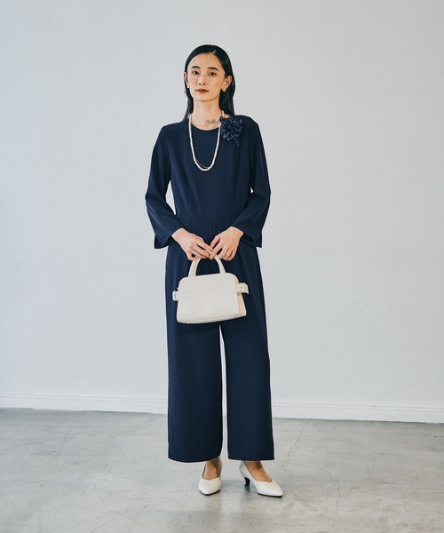 シンプルなデザインのオールインワンです。アクセサリー使いで1枚でも綺麗めに着用することができます。ジャケットを羽織ってコサージュやブローチをつけてセレモニーシーンにもぴったりです!
