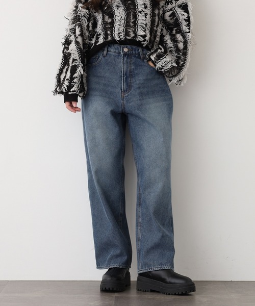 起毛/インディゴ/ロングパンツ/ルーズシルエット/ビッグシルエット/秋服/冬服/ステッチ/レディース