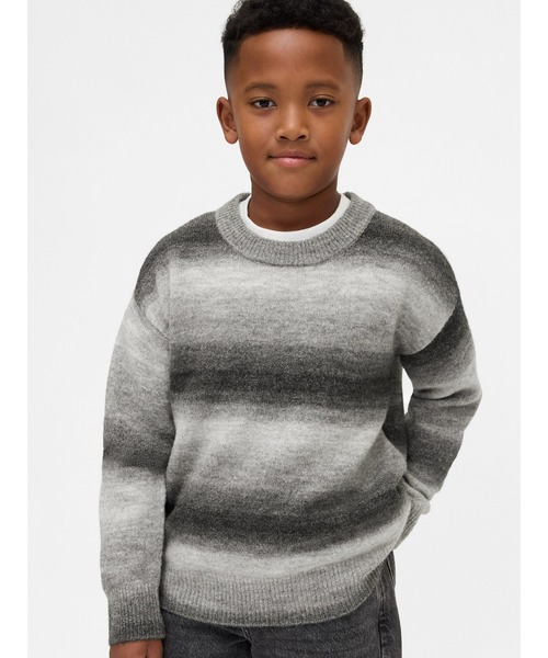 スペースダイと呼ばれる染色方法で多色染めされた糸を使った柔らかく肌触りの良いウール混セーター、リラックスフィット