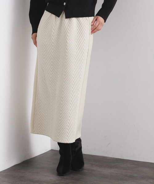 ・ヘリンボーン柄キルティング風の生地感が特徴的なカットソーのナロースカートです。