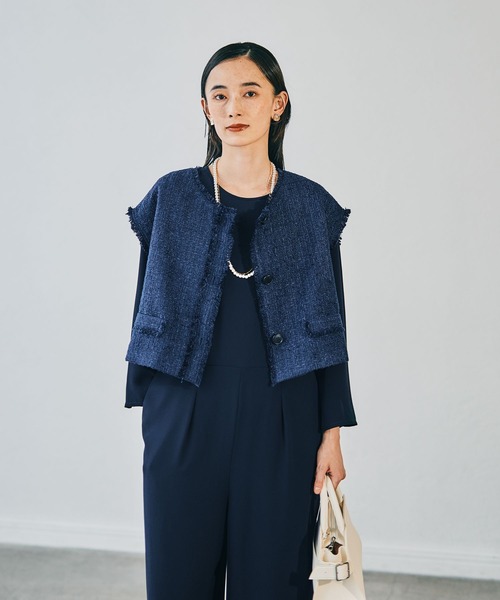表面感のあるツィード素材がポイントのショートジレ