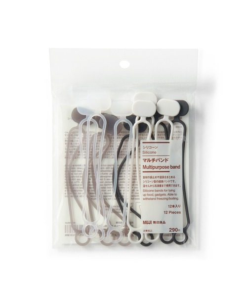 食材の袋止めや道具をまとめるシリコーン製の結束バンドです。湯せんから冷凍庫まで使用できます。