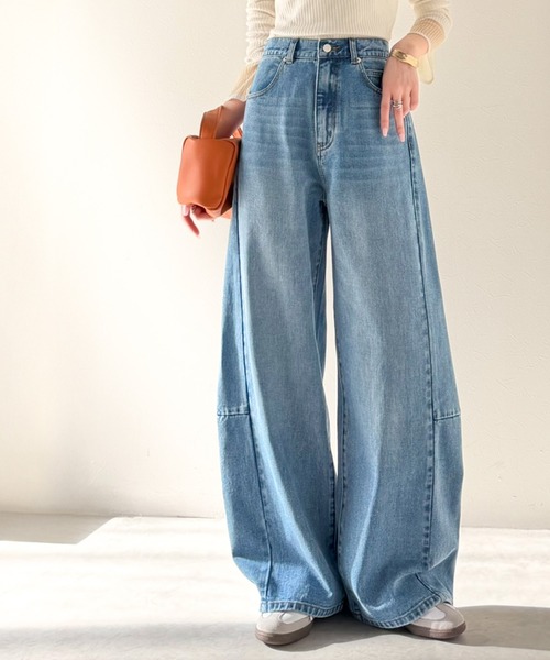 ハイウエストのカーブラインで腰高に見せ、スタイルアップを叶えるデニムパンツ。