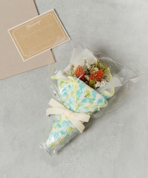 造花のお花をタオルハンカチで束ねたギフトセット。