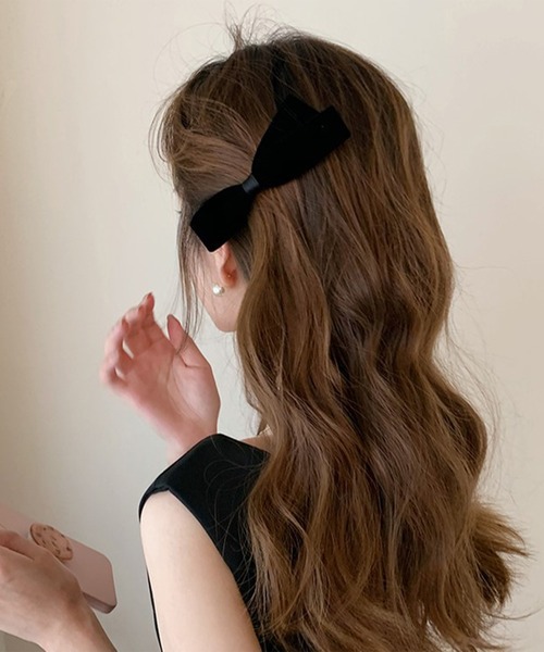 後ろ姿をアップデートする、アシメベロアリボンバレッタ。