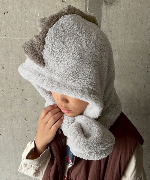 恐竜のトサカが付いた可愛いフードマフラー。