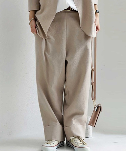 キーワード:パンツ レディース ウエストゴム クロップド ハイウエスト 無地