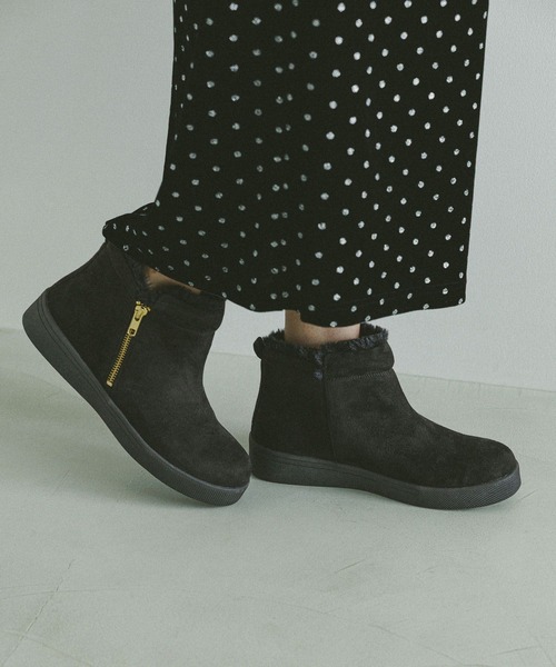 ライニングのフェイクファーはつま先までフワフワで、足全体が暖かいです。また、スニーカーソールを採用し、履き心地も快適です。