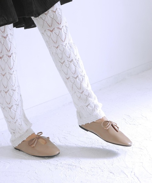 参考商品名:ふかふかインソール/リボン付きスリットデザインのぺたんこフラットシューズ