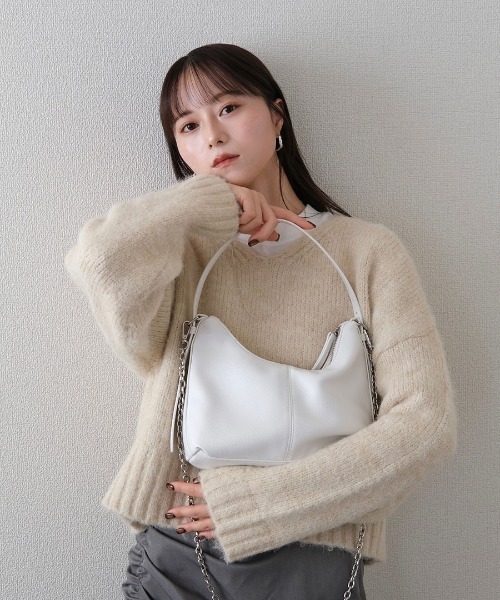 参考商品名:オリジナルチェーンストラップホーボーバッグ / ハーフムーンバッグ チュビーバッグ 合皮 シルバーチェーン 2way シンプル きれいめ 大人カジュアル モード 韓国 ブラック ホワイト アイボリー