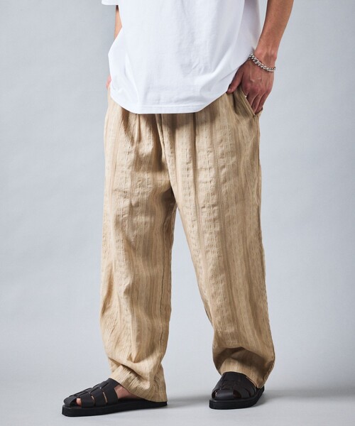 キーワード:パンツ メンズ ウエストゴム ストレート ハイウエスト フルレングス ワイドパンツ 無地