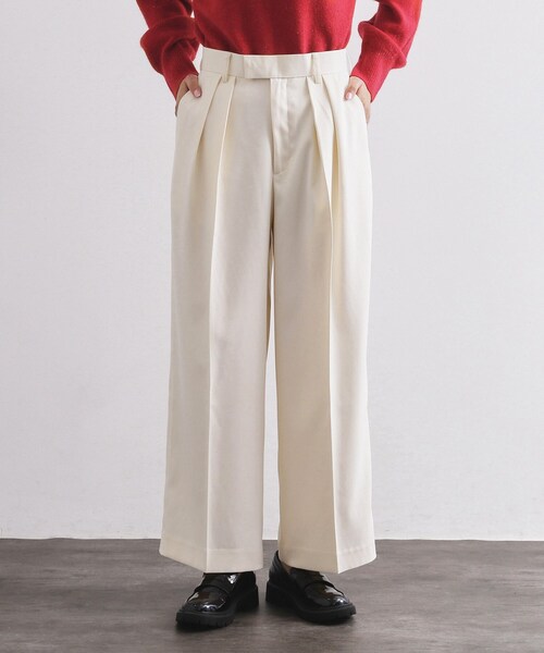 あたたかみのあるカルゼ素材を使用した、ハイウエストタックパンツ。