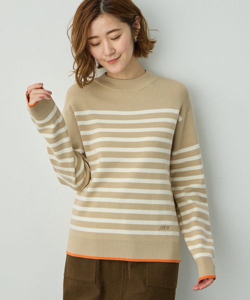 《配色リブがさりげなく映えるもちもちボーダーニット》