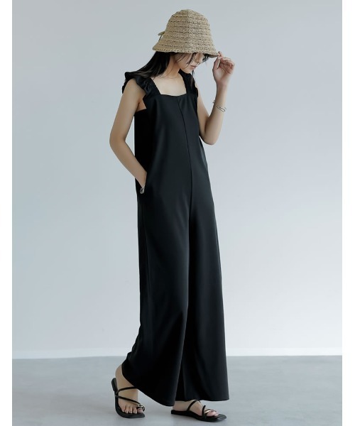 参考商品名:[低身長サイズ有][洗濯機で洗える]フリルストラップスクエアネックオールインワン
