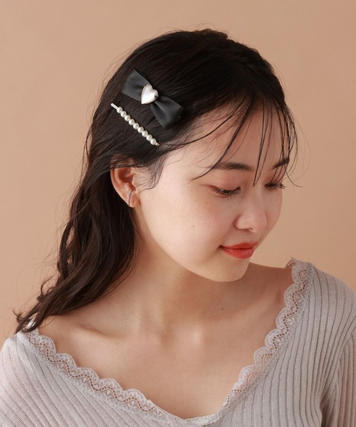 オンオフ使える大人可愛いヘアアクセ大人っぽいリボンモチーフのヘアクリップ&ヘアピンセット。