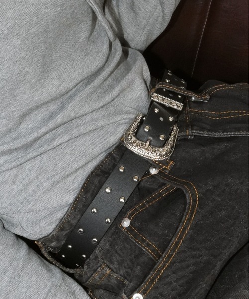 重厚感のある彫刻メタルバックルに、スタッズを打ち込んだレザーベルトが放つクラシックな存在感。