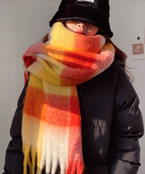 コートやダウンの上からざっくり巻くだけで、こなれた印象に仕上がる万能アイテムです。
