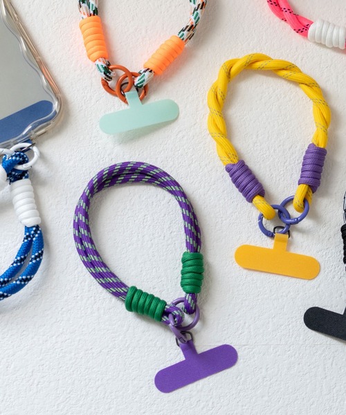 アウトドア感のあるパラコード素材を使ったカラフルなストラップ。