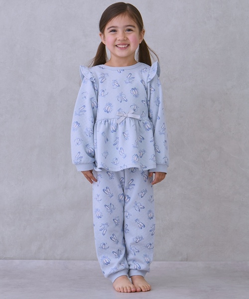 トップスは肩のフリルや切り替えのリボンで、可愛らしいアクセントをプラス。