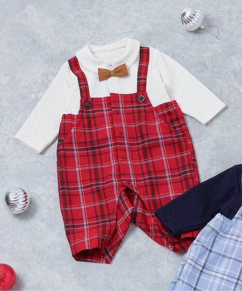 apres les cours(アプレレクール)のカバーオール・ロンパース「【リンク】チェックサロペットカバーオール」は、やさしいニュアンスのナチュラルなデザイン。ベビーギフトや出産祝いの主役にも♪