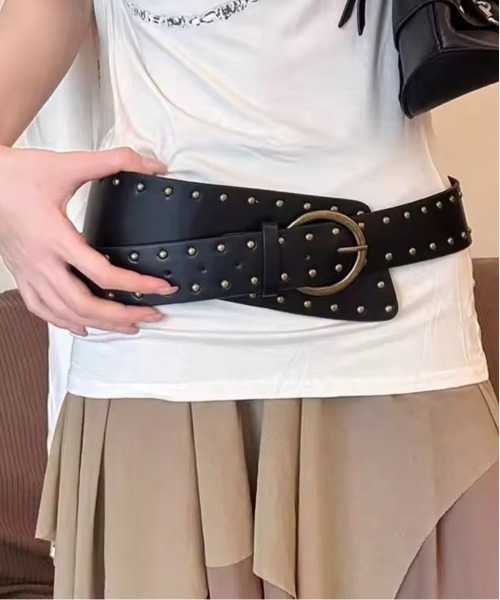太めのデザインがウエストをしっかりマークし、コーデを引き締めます。