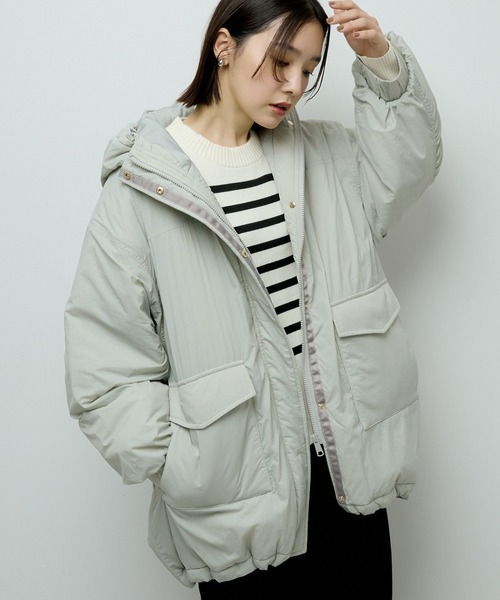 ボリューム感のあるオーバーサイズが魅力のフーディーコート。