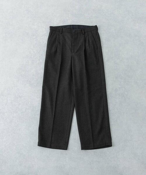 【重厚なヘリンボーンが織りなす、大人のためのワイドスラックス】トラディショナルなヘリンボーン柄と、現代的なリラックス感を持つワイドシルエットが融合した、クラシカルなスラックスです。