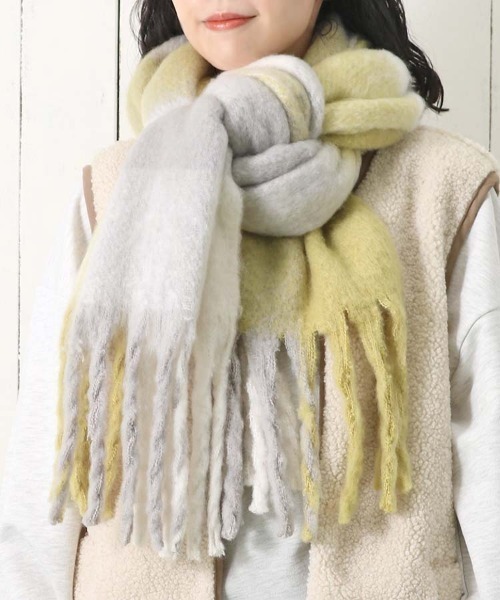 ぐるりと巻くだけでしっかり防寒出来るボリュームのある大判サイズ。