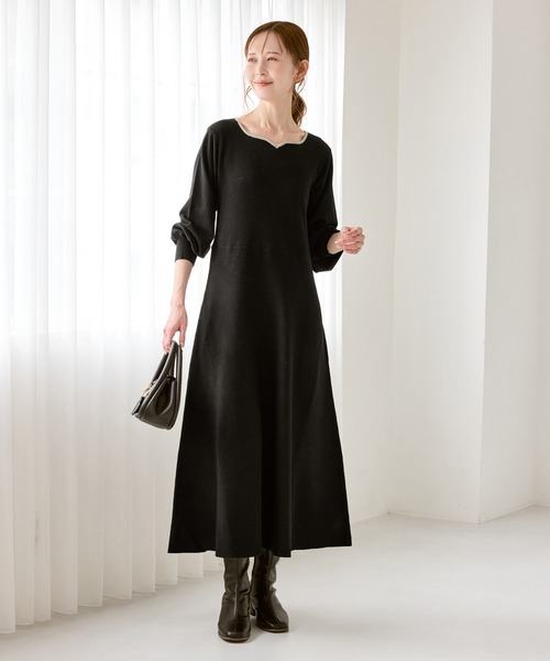 ・ハートネックがポイントの一枚でキマるニットワンピース。