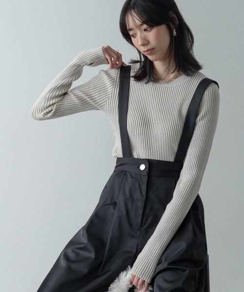 リブの凹凸感がシンプルながらもしっかりとした存在感を演出し、女性らしいシルエットを引き立てます。