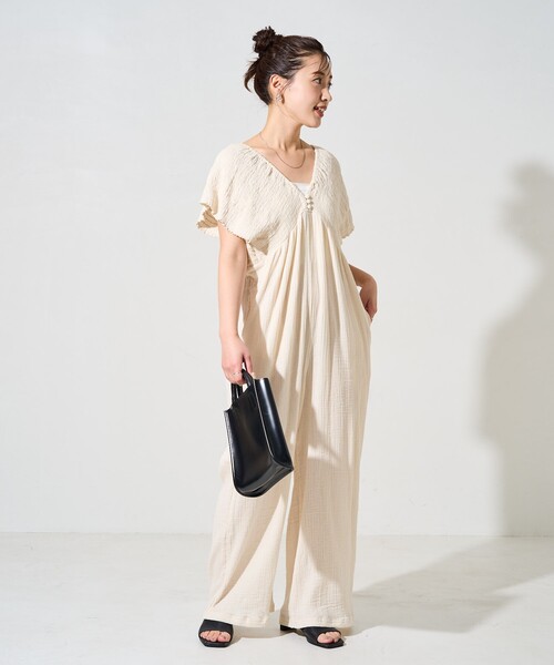参考商品名:限定展開 インド ダブルガーゼ シャーリング オールインワン