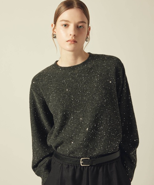 昨年も好評だったスパンコール糸を使用した、華やかな印象のニットプルオーバー。