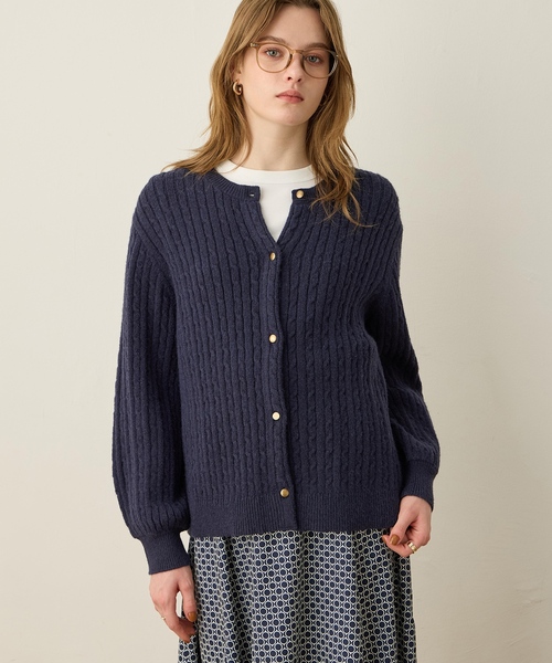 細やかなケーブル柄をあしらったニットカーディガン。