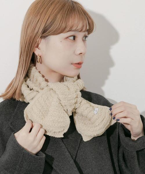 ぽこぽことした立体的な編み地が、表情豊かで愛らしいニットマフラー。