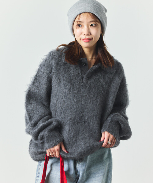 上品なシャギー素材をモダンに落とし込んだ、リラックスムード漂うポロニット