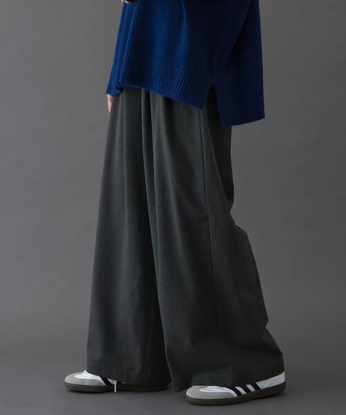 シルエットは夏に好調だったツータックワイドイージーパンツをベースにしたて、程よいワイドシルエットでこなれ感◎ウエストのタック分量を少し調整しています。