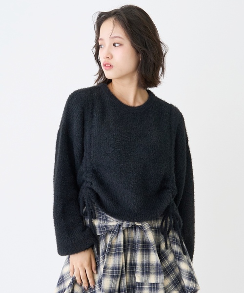 裾のドロストでシルエットを変化できるニットです。