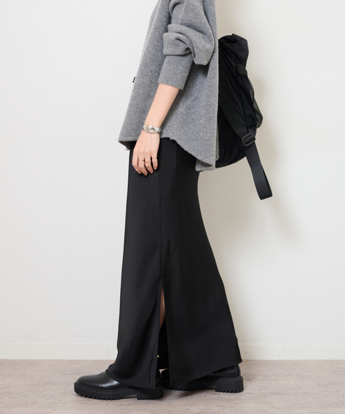 ◆女性らしくスタイリッシュ印象に着ていただけるサテンスカート