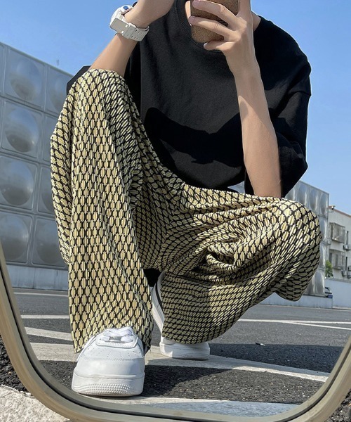 キーワード:パンツ メンズ ウエストゴム ストレート ハイウエスト フルレングス ワイドパンツ