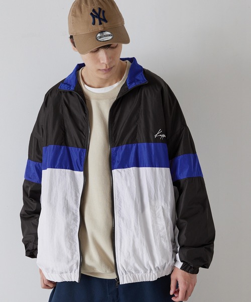 参考商品名:Kappa / カッパ 別注 ロゴ刺繍 ビッグシルエット切替えフルジップボリュームスリーブトラックナイロンブルゾン