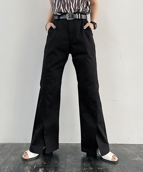 キーワード:チノパン レディース フルレングス フレアパンツ レギュラー ワイドパンツ 無地
