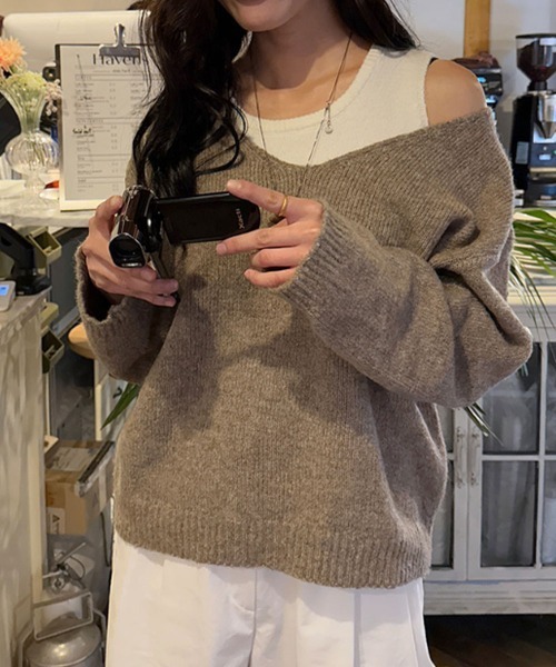 セットで着れば、オフショルダー風のスタイリングも楽しめます。