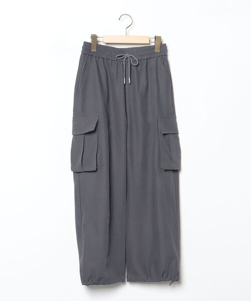 キーワード:カーゴパンツ レディース ウエストゴム ストレート ハイウエスト フルレングス ワイドパンツ 無地