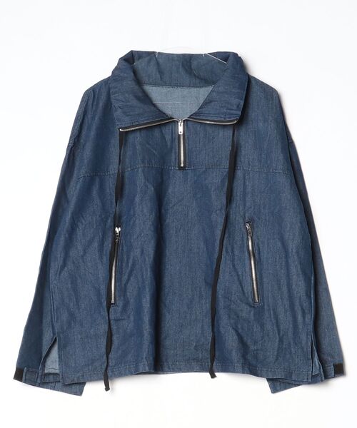 参考商品名:ハーフジップデニムプルオーバー