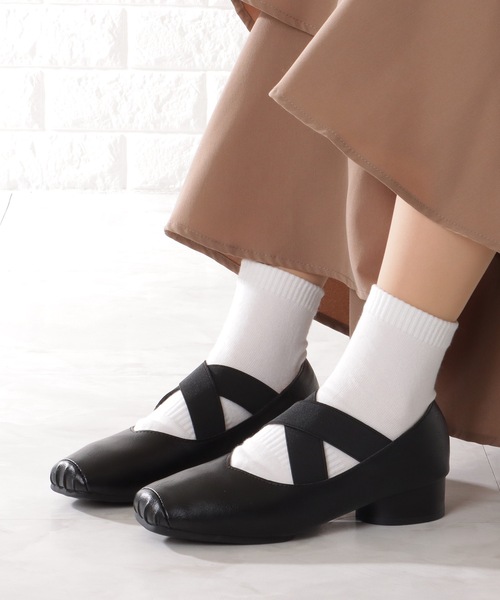 参考商品名:クロスストラップ スクエア ローヒール パンプス
