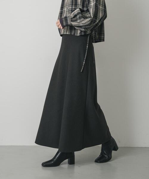 上品なぬくもりを感じさせる素材を使用したロングスカート。計算された美しいAラインシルエットが、身体のラインを拾いすぎず、スタイルアップを叶えます。ウエスト周りもすっきりと見えるデザインなので、トップスをインした着こなしもきれいに決まるのが魅力。秋冬の着こなしに洗練された印象をプラスする一枚です。