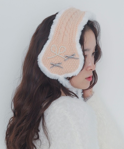 リボンとニット素材の組み合わせがガーリーな印象のイヤーマフ。