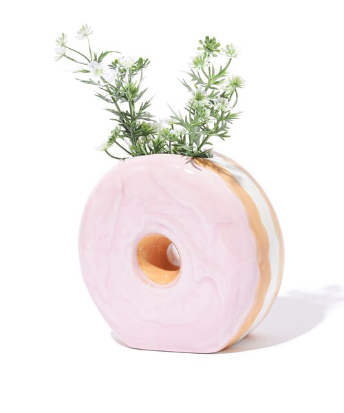 こちらは、ドーナツの形をモチーフにしたユニークなフラワーベースです。