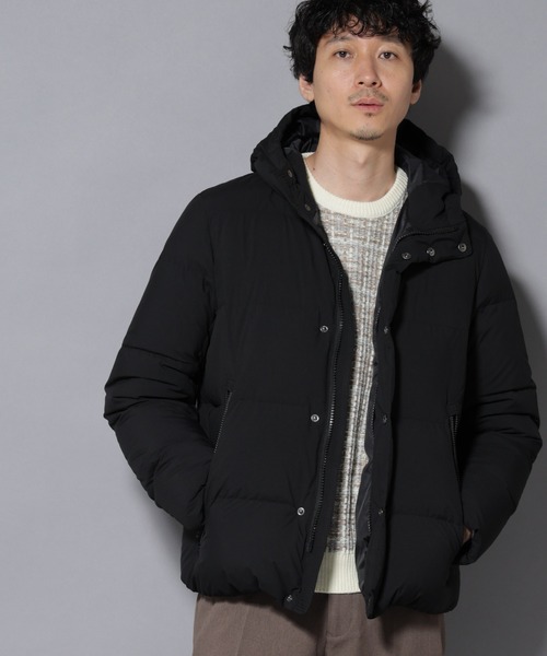 高い保温性と撥水機能を備えた、ボリューム感のあるフーテッドダウン。すっきりとした細身なボディは洗練されたデザインで、一枚でスタイリッシュに決まる一着です。