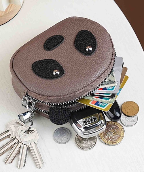 ふっくらしたフォルムと愛らしいパンダフェイスがポイントのミニポーチ。
